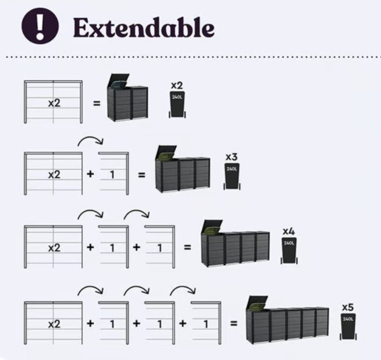 - Ideal bin storage solution for 2 x 240L wheelie bins