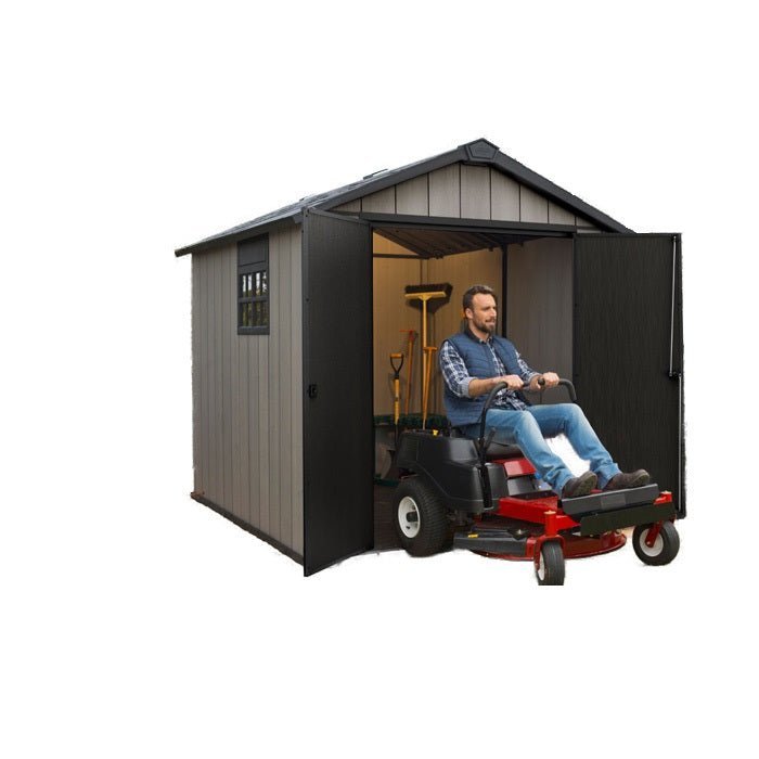 - Double doors give easy access to bikes, furniture, trash and recycling bins, gardening and lawn-care equipment.