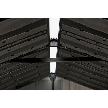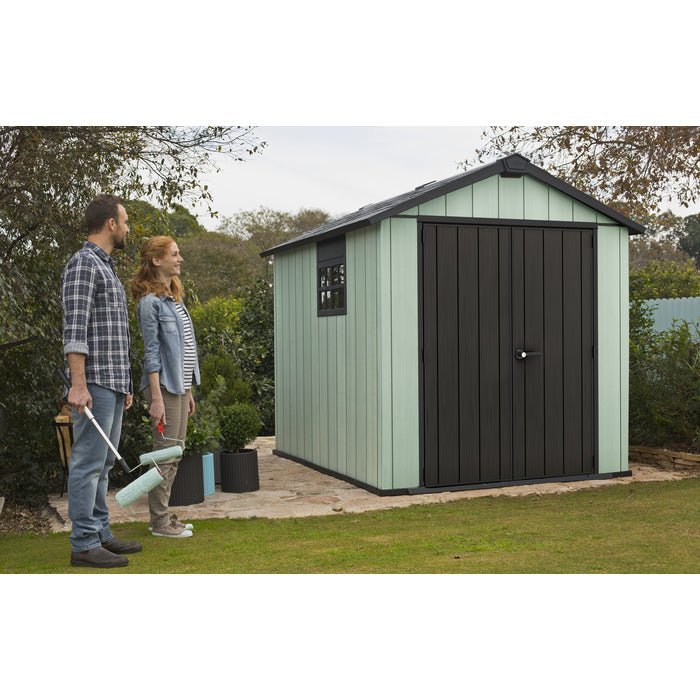 Style, accessibility and super rugged storage. The Oakland 759 shed is the durable and weather-resistant addition to any backyard, providing a generous storage solution with a heavy-duty floor, robust roof and double wall structure reinforced with steel. Its unique and easily paintable DUOTECH™ walls have an attractive worn wooden texture walls, a Victorian-style window, a skylight and double doors that provide accessibility.
