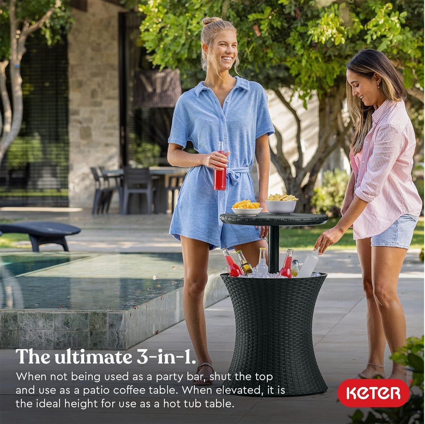 Throw the perfect BBQ or garden party with this essential piece of outdoor furniture. Ideal for entertaining, the Outdoor Cool Bar Ice Cooler serves as a cocktail table, coffee table, and cooler – all in one. Its spacious ice bucket with double wall insulation keeps drinks ice-cold even on the hottest days. It also features a removable drainage plug for easy cleaning, and thanks to its weather-resistant construction, it requires virtually zero maintenance to keep it looking great.