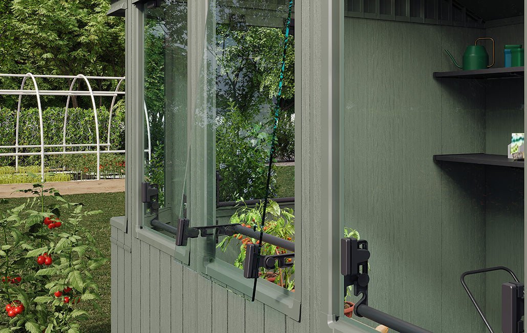 Bright, Weather-Resistant Design: Featuring an innovative hybrid roof, the Keter Potting Shed combines a translucent section to let in natural sunlight with an opaque section for protection from the elements. 7 easy-open windows and two fixed corner windows provide excellent ventilation and light-filled environment.